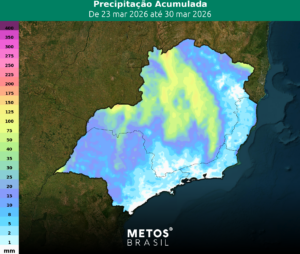 A primeira semana do outono na região Sudeste inicia com condições de estabilidade e tempo firme na maior parte da área, com exceção do Espírito Santo e norte de Minas Gerais, que apresentam chuvas significativas na segunda-feira. A partir da terça-feira, este cenário mudará devido ao avanço de uma frente fria e à maior concentração de umidade, que trarão chuvas elevadas para o Triângulo Mineiro e noroeste de São Paulo. Na quarta-feira, as precipitações mais volumosas se concentrarão no centro-norte mineiro, condição que persistirá na quinta-feira. A partir de sexta-feira, o tempo se tornará mais estável na região sudeste, enquanto o litoral capixaba poderá registrar chuvas isoladas com baixos volumes, perfil que se manterá no sábado.