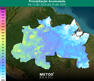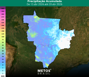 Por outro lado, áreas mais ao norte e leste, como Roraima, Amapá e norte do Pará, tendem a registrar menores volumes de chuva, com possível redução gradual da umidade do solo.